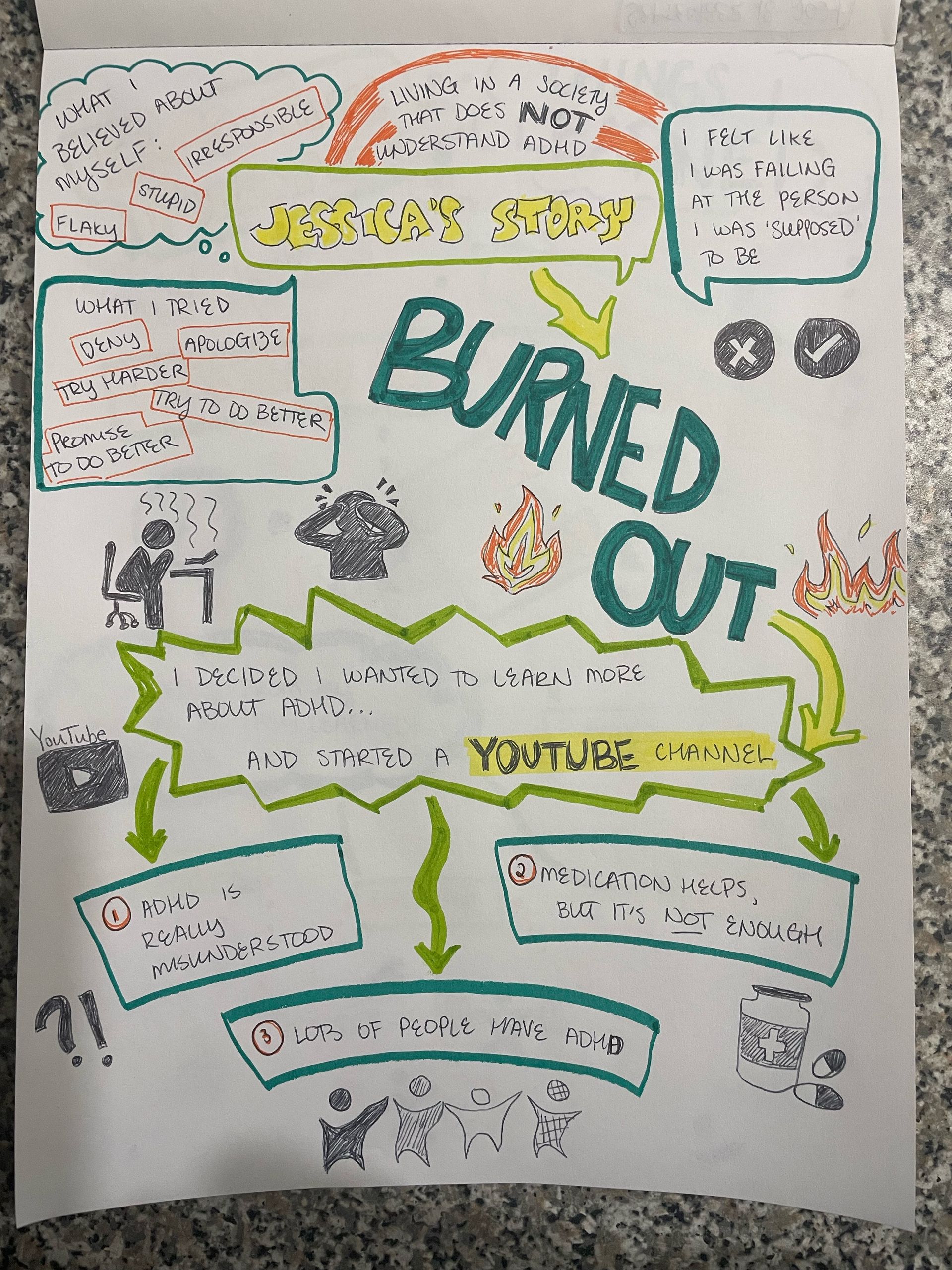 With her captivating energy, Jessica walks the audience through a series of anecdotes: from struggling in school once intelligence alone was not enough, to all the judgmental labels she believed about herself, to a series of missed opportunities in adulthood caused by so-called "careless" mistakes. All of this resulted from a lack of understanding of how her brain worked. She lamented being told she had “so much potential,” yet she consistently failed to live up to it.