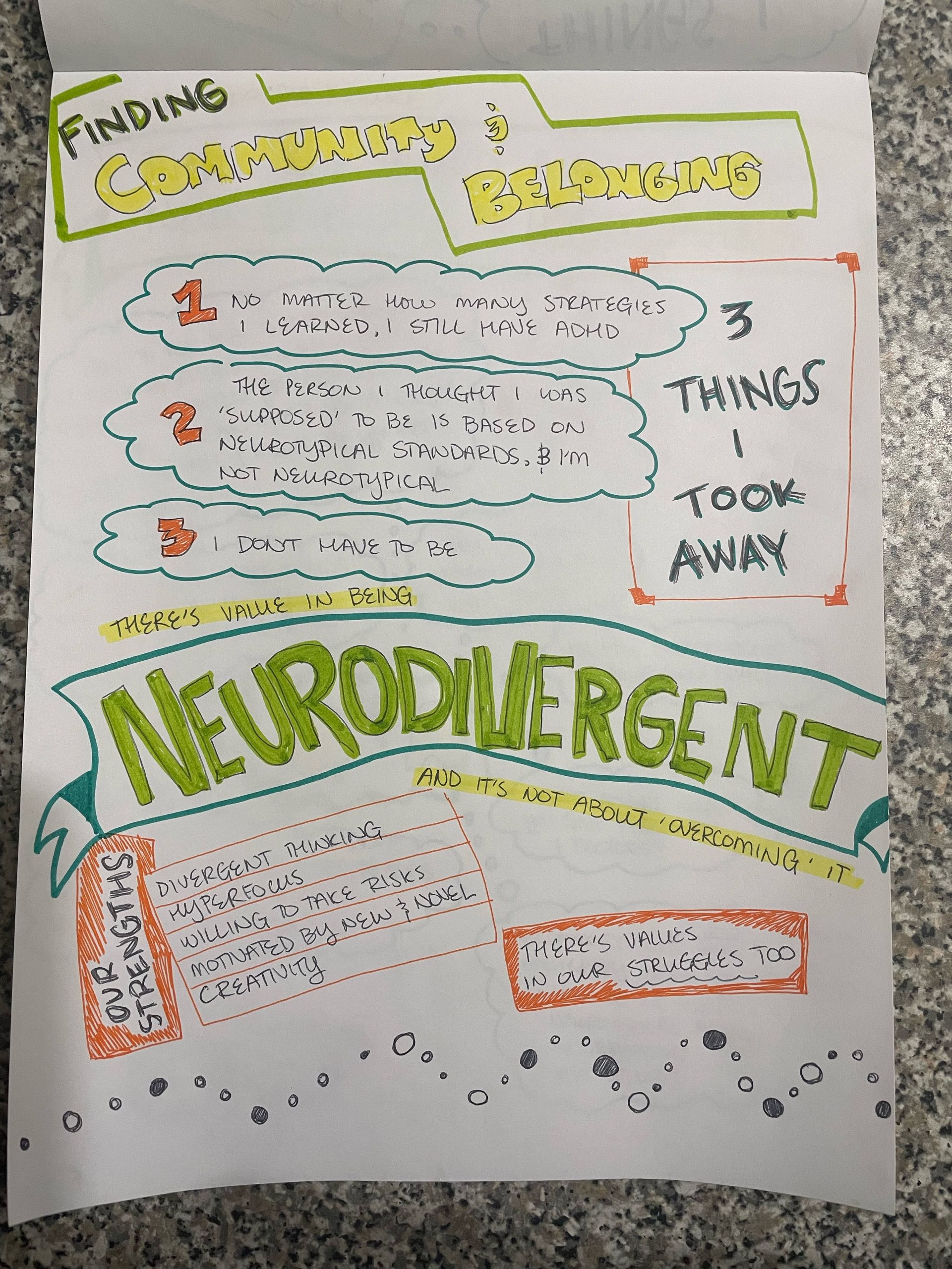 Through a mix of science and storytelling, Jessica created a space that values neurodiversity and encouraged attendees to reflect on their own neurodivergent traits (or those of loved ones). She calls for attendees to consider more compassionate, strengths-based approaches. She realized that ADHD is not a deficit but a different way of being with its own value. You don’t need to become the person you’re supposed to be; you already are. ❤️